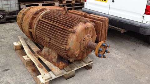 This is a 65KW Slip-Ring brake motor which drives an anchor chain on a ship. Often referred to as a Windlass Motor. It weighs 1970kg and measures just under 2 meters in length. This motor is sited on the deck of the ship and is subject to a range of weather conditions and regular soakings with salt water.